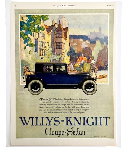 Willys Knight 1923 Overland Coupe Sedan Advertisement Automobilia Litho HM1C
