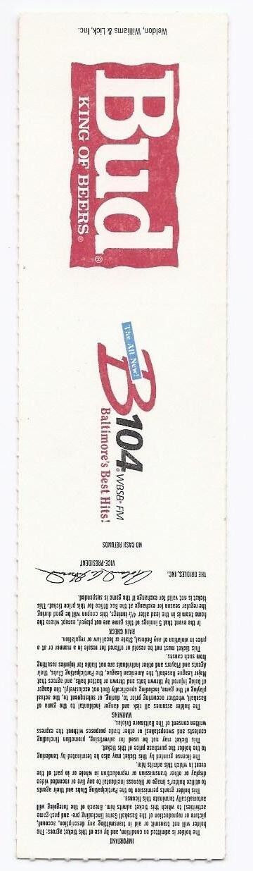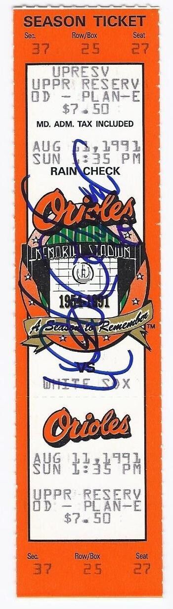 - Wilson Alvarez No Hitter Signed Full SEASON Ticket White Sox @ Orioles 8/11/91