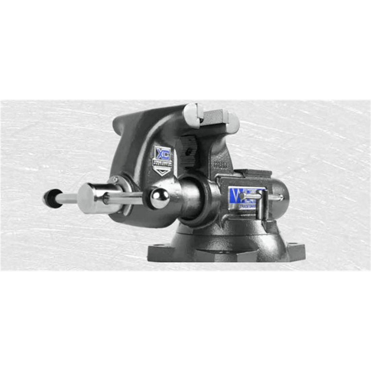 Wilton TRADESMAN XC VISEFeatures and Benefits:?360 swivel base with double lockdowns for easy and secure access while in use?60,000 PSI ductile iron body, jaw, and base is virtually indestructible with 2X the strength of gray cast iron?Enclosed design keeps lubrication in and contaminants out for a lifetime of smooth operation?Large anvil designed to take a beating while forming and shaping materials?Longer spindle nut ensures smooth movement and a stronger straight-line pull?Precision slide bar eliminates movement in the front jaw regardless of opened distance?Reversible jaw inserts are serrated on one side for extra grip and smooth on the other to prevent marring on softer surfaces?5.5 inThe Tradesman XC vise is designed to handle the most demanding clamping applications under the most extreme environmental conditions. Unlike most vises that have a fixed center nut, all Tradesman round channel vises use a nut anchored at the rear which provides straight line pull and even pressure resulting in greater durability. The round channel design also allows for a completely enclosed spindle and nut assembly keeping debris out and lubrication in for a lifetime of smooth operation. For ultimate versatility, all Tradesman vises are equipped with main jaws, pipe jaws and a machined anvil work surface. The Tradesman XC models also include electroless nickel coating of key components, prolonging life in corrosive environments, saving hundreds of dollars on repairs and avoiding countless hours of lost work downtime.