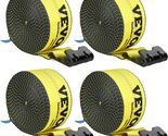VEVOR Winch Straps, 4" x 30', 6000 lbs Load Capacity, 18000 lbsBreak Strength, Truck Straps with Flat Hook, Flatbed Tie DownsCargo Control for Trailers, Farms, Rescues, Tree Saver, Yellow (4Pack)