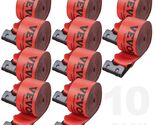 VEVOR Winch Straps, 4" x 30', 6000 lbs Load Capacity, 18000 lbsBreaking Strength, Truck Straps with Flat Hook, Flatbed Tie DownsCargo Control for Trailers, Farms, Rescues, Tree Saver, Red (10Pack)
