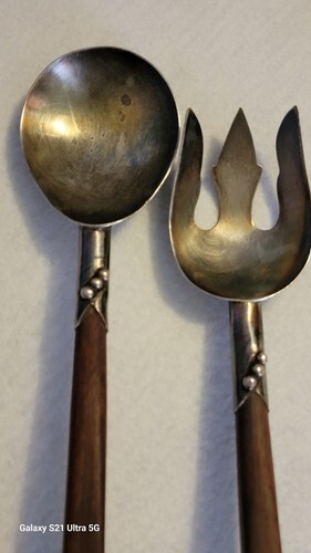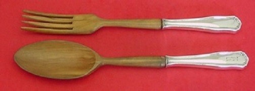 - Winchester By Shreve Sterling Silver Salad Serving Set with Wood 2pc 10 3/4"