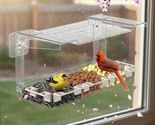 Window Bird Feeder with Strong Adhesive Hooks, Clear, 5 Perches, Drain Holes Removable Tray