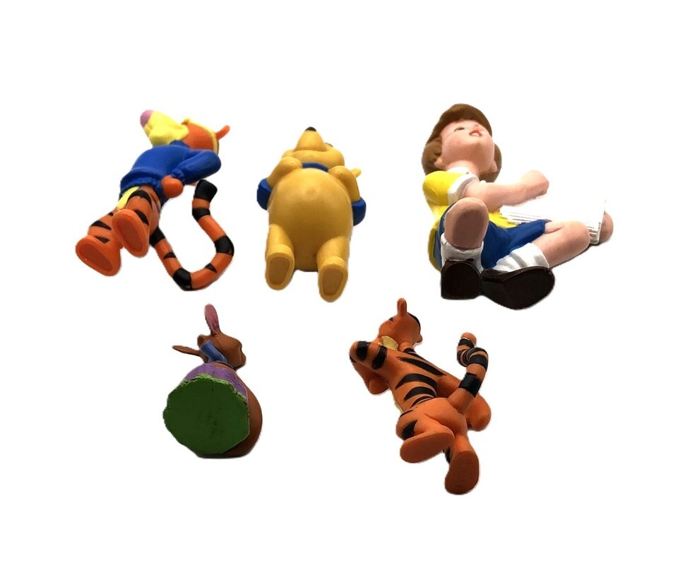 Winnie The Pooh, Tigger, Christopher Robinson, Little Roo 2-4" Figures Set of 5. Christopher is dated 1999. The rest of the figures are not dated. The toys are in good, clean, pre-owned condition. I do have more items listed and offer combined shipping in cart when you purchase multiple items.