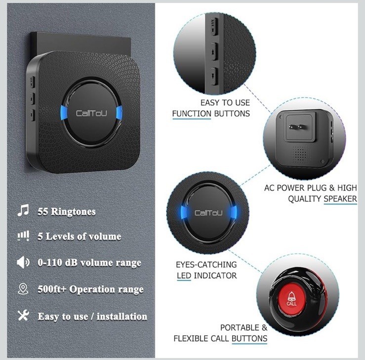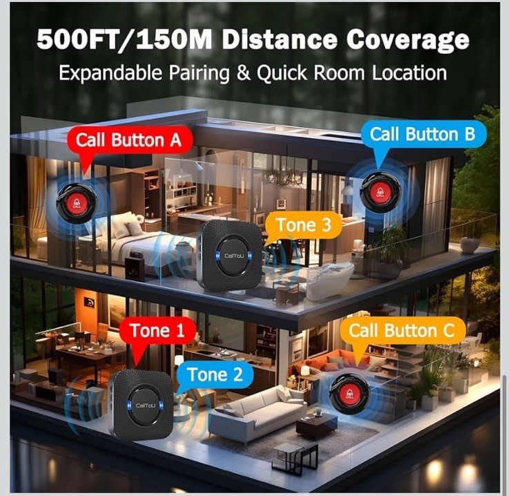 - Wireless caregiver pager 2 chimes and 3 call buttons New Open Box