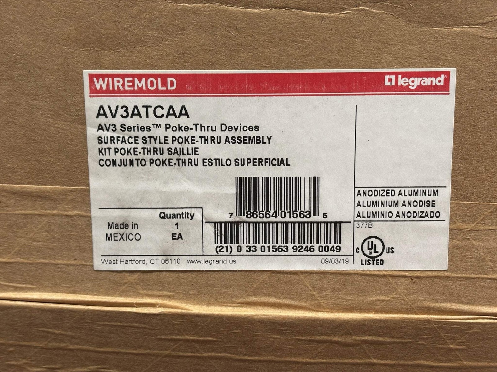 Wiremold AV3ATCAA Poke-Thru Device with Power and AV Connectivity New The Wiremold AV3ATCAA is a 3-inch poke-thru device designed for bringing power and AV connectivity to open spaces. It includes a pre-wired 20A duplex receptacle and supports modular data/AV connections using AVIP, Extron MAAP, or Ortronics TracJack interfaces. Its TopGuard? protection resists water and debris, making it ideal for carpet, tile, or wood floors. The brushed aluminum finish provides a clean, modern look. This unit is commonly used in conference rooms, offices, and commercial interiors. Listed by: Koryon (Sales Team) "Do what you can, with what you have, where you are." ? Theodore Roosevelt (A positive moment brought to you by Help Resale) About Us Welcome to Help Resale, your go-to consignment shop where value meets quality. At Help Resale, we're dedicated to providing you with an exceptional shopping experience, whether you're looking to find the best deals or consign your items. Need to buy a product, but don't see it in our store? Please feel free to reach out to us and we will help you find it! Help Resale 7200 Fair Oaks Blvd Suite 120 Carmichael CA 95608 Business Hours: Monday-Friday: 9:00 am to 5:00 pm (PST) All product and company names are trademarks TM or registered trademarks of their respective holders. Use of them does not imply any affiliation with or endorsement by them.