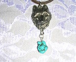 WOLF HEAD FACE w TURQUOISE NUGGET 18" NECKLACE WOLVES
