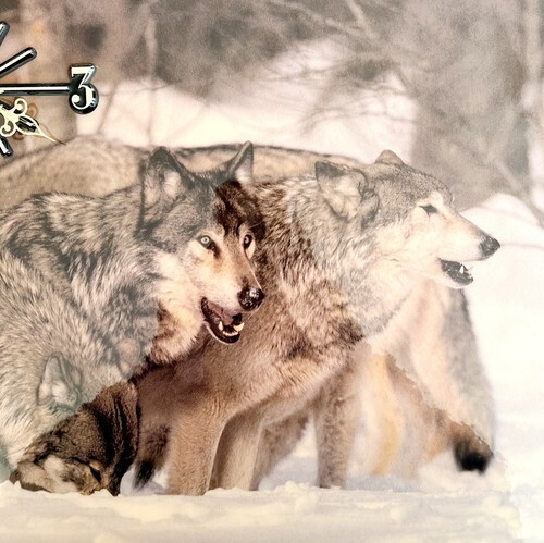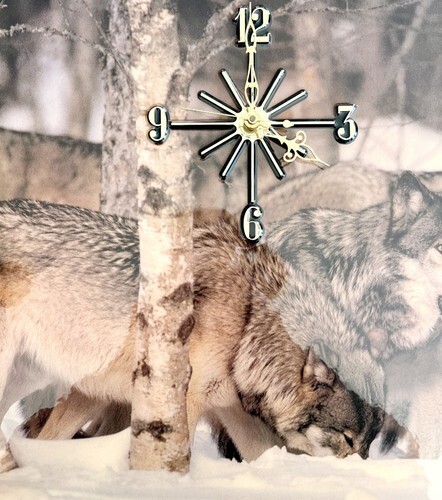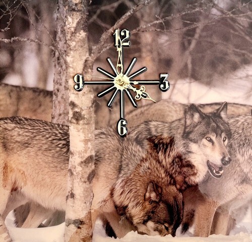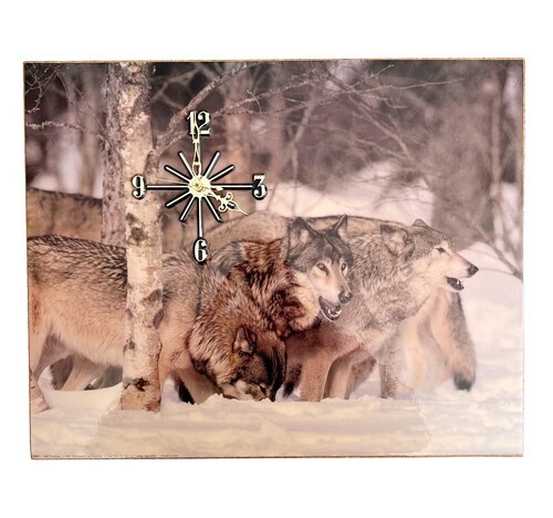 Primary image for Wolf Pack In Snow Clock Coated Photo On Wood 1993 Vintage Tested Works SS