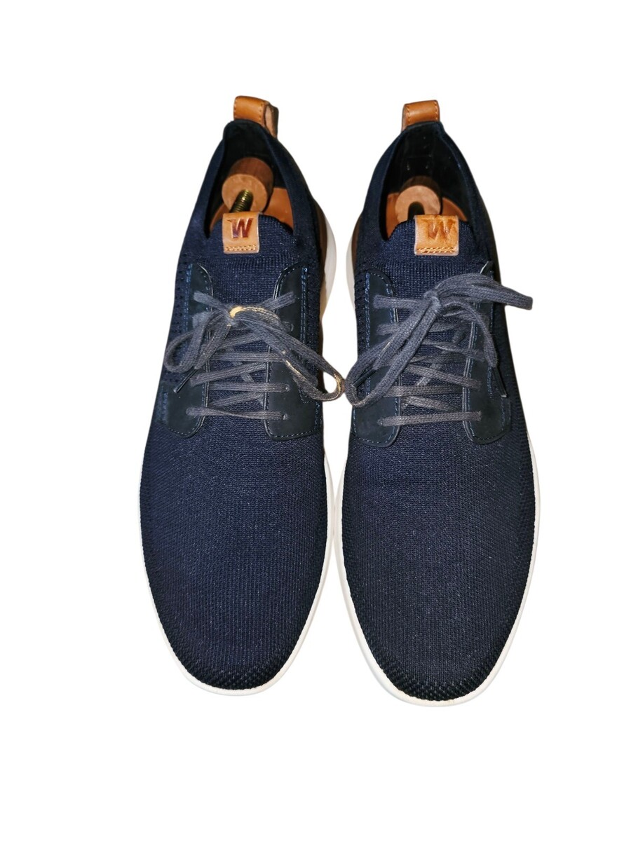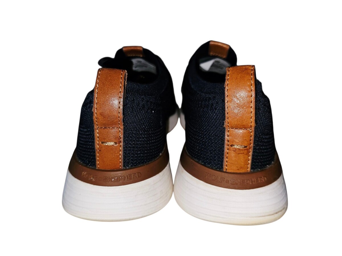 - Wolf & Shepherd Swiftknit Knit Leather Sneakers Navy Blue Men's Sz 11 Women's 12