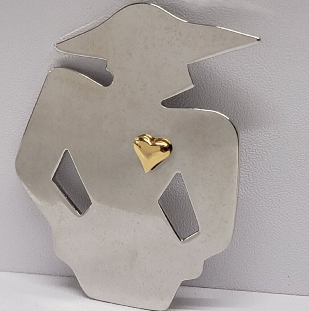 - Woman Silhouette Lady with Hat Goldtone Heart Pin Brooch