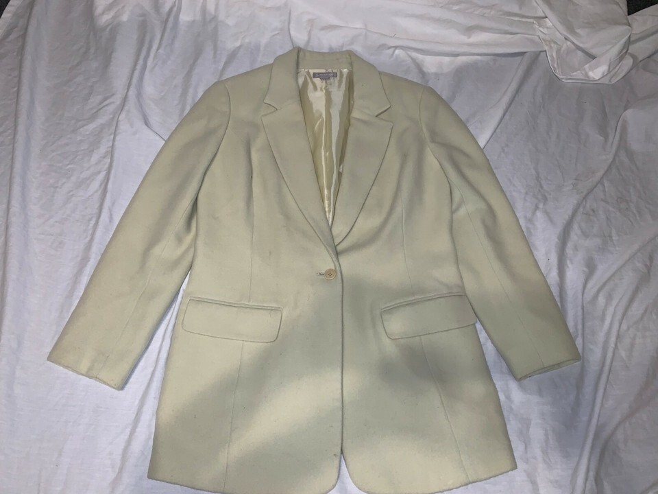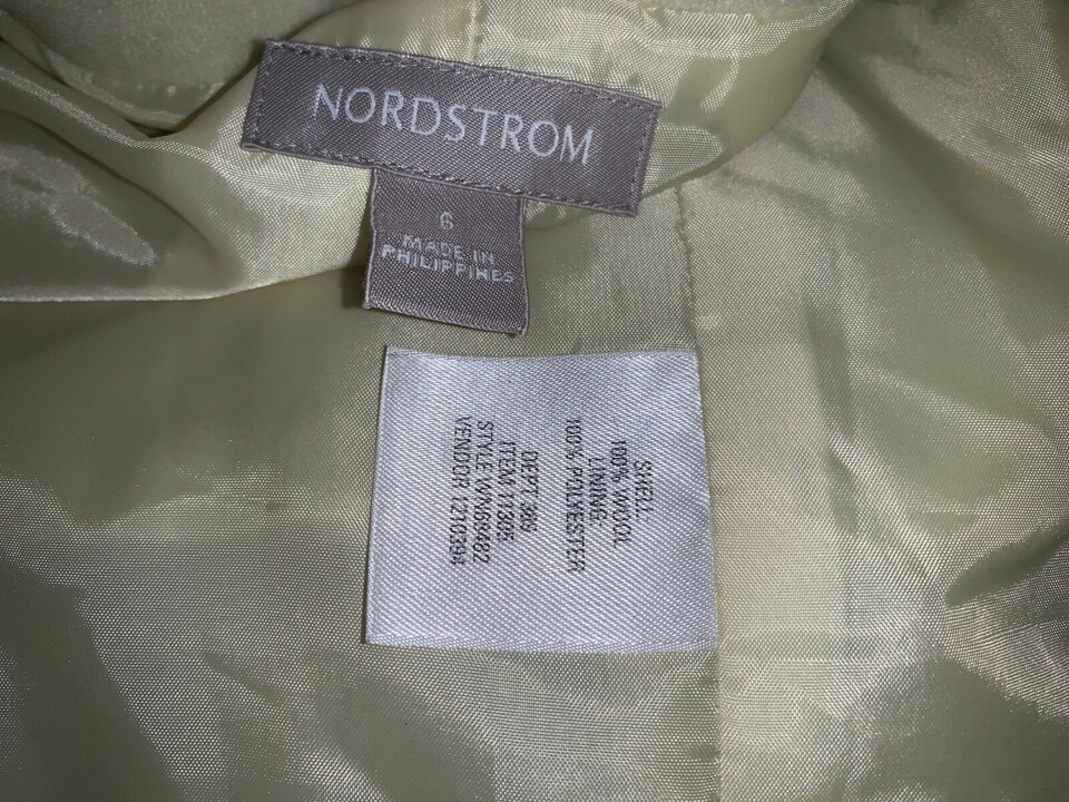 Women 100% Wool Poly Lined Nordstrom Light Yellow Single Button Blazer Jacket 6 SIZE: 6 COLOR: LIGHT PALE PASTEL YELLOW CONDITION: PRE-OWNED DEFECTS: NEEDS TO BE DRY CLEANED AS THERE ARE SMALL STAINS ON THE WOOL IF YOU FIND ANYTHING WRONG WITH THIS LISTING , PLEASE MESSAGE ME RIGHT AWAY AND I WILL FIX IT, OUR GOAL IS TO 100 PERCENT SATISFY YOU. WE SEND TO INTERNATIONAL BUYERS IF THE ITEM QUALIFIES. ALL MY STORE ITEMS CAN BE SENT INTERNATIONALLY THRU THE GLOBAL SHIPPING PROGRAM . BUYERS ARE RESPONSIBLE FOR ALL TAXES, AND ADDITIONAL COUNTRY REGULATED FEES. WE WILL SEND TO THE SHIPPING CENTER IN KENTUCKY AND WILL SEND IT TO YOUR ADDRESS IN YOUR COUNTRY EXCEPT RESTRICTED COUNTRIES, INTERNATIONAL BUYERS CANNOT BUY ANY MILITARY ITEMS IN MY STORE OR ANY RESTRICTED ITEMS THAT DEEMS RESTRICTED. THE GLOBAL SHIPPING PROGRAM IS A PROGRAM FOR INTERNATIONAL BUYERS TO PURCHASE FROM UNITED STATES SELLERS LIKE MYSELF, YOU SIMPLY CALL AND ENROLL. Thank You for looking at my Store. I am a United States Army Veteran and our Store is Veteran Owned and we count on an honest transaction. We have a no hassle return Policy. It?s really simple if you don?t like it please return the item and I will issue you a refund. I have quickly learned that Customer Satisfaction is the number one Priority. My Store is open for Business and I invite everyone to take a quick look at what I have...Just click here and see all that I have We now ship every day to include SATURDAY AND SUNDAY? which means our carrier service now picks up 7 Days a week. If you BUY TODAY? your ITEM will get out no later than 72 hours after your purchase. It will have the best head start as it will be processed at the Denver Hub within 72 Hours of your purchase. Even if you buy at night your Item will be processed the next two mornings and will be at the Denver Hub WITHIN 72 HOURS. We have Incredible FAST SHIPPING and again WE NOW SHIP ON SATURDAY AND SUNDAY. If you have any questions please MESSAGE ME... If you have any CONCERNS please MESSAGE ME. If you have any ISSUES with your Item please let me fix it. I count on your Business and in return I will give you an Honest Auction. I look forward to doing Business with you. View more great items