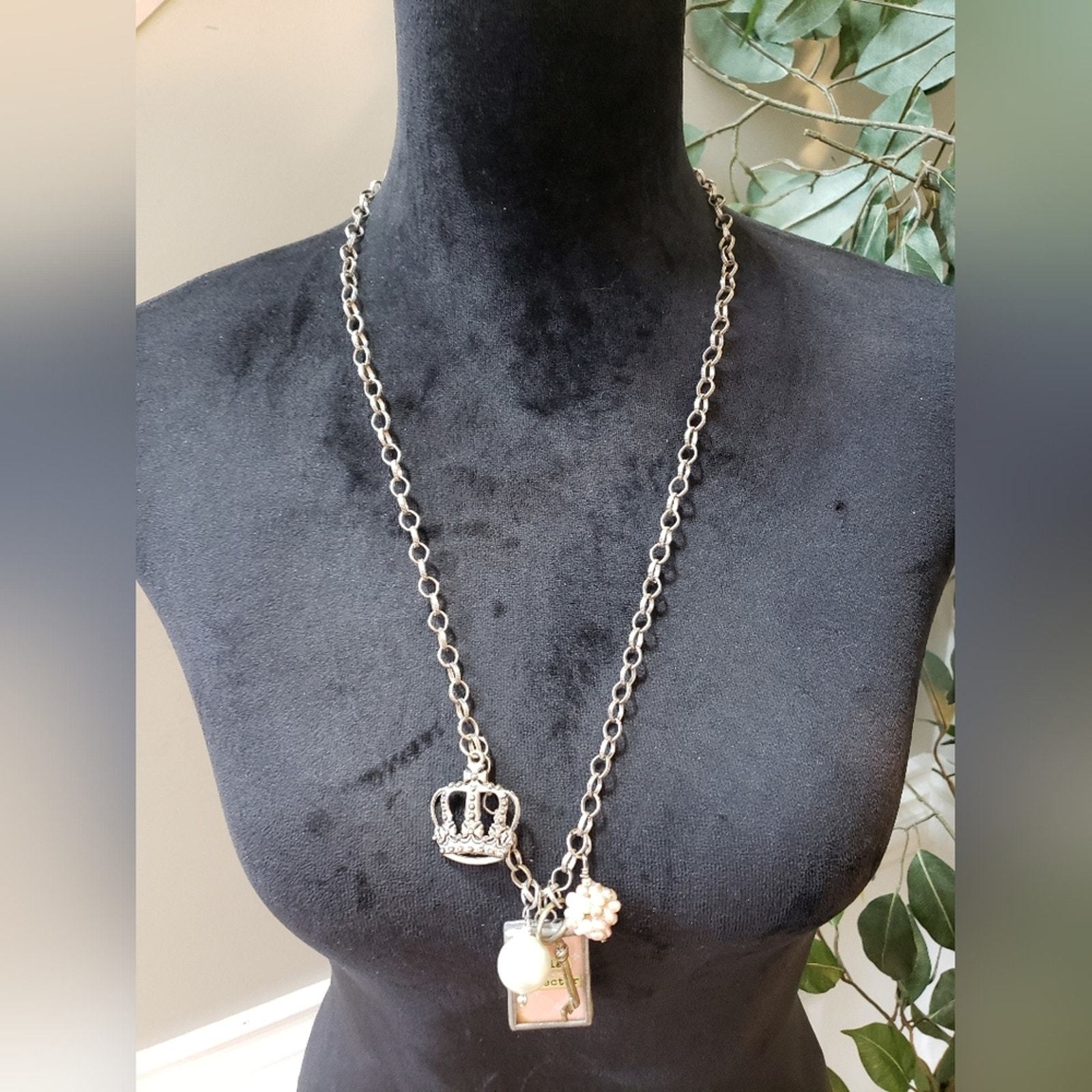 - Women Fashion Silver Tone Royal Crown Key Pendant Necklace with Toggle Eye Clasp