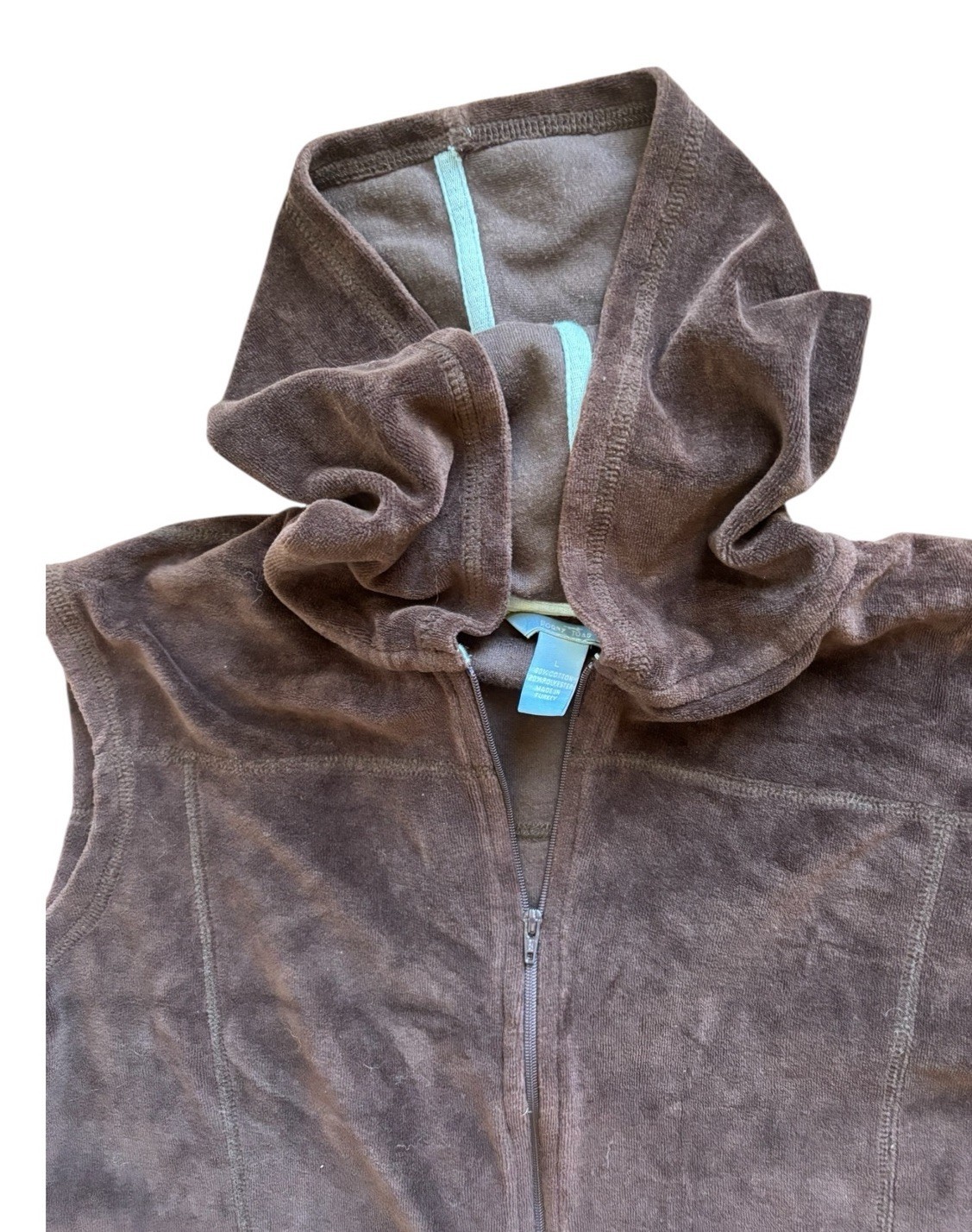 Women L Horny Toad Co Full Zip Hooded Vest Jacket Sleeveless Velvet Velour Y2K