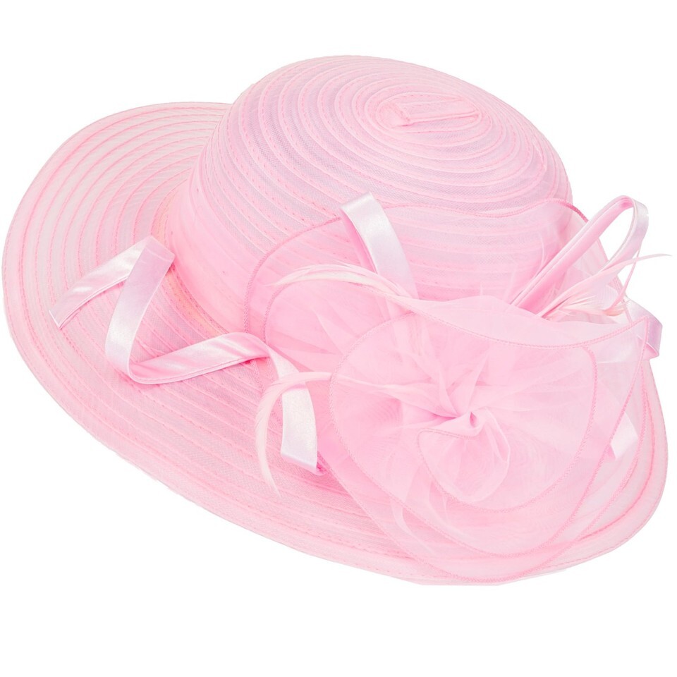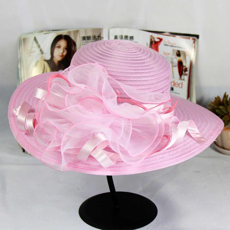 Women Organza Bowler Kentucky Derby Fascinator Hat Pink Bridal Wedding