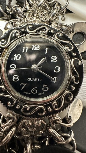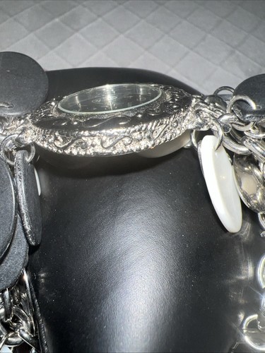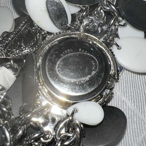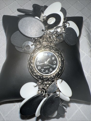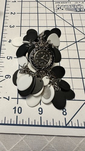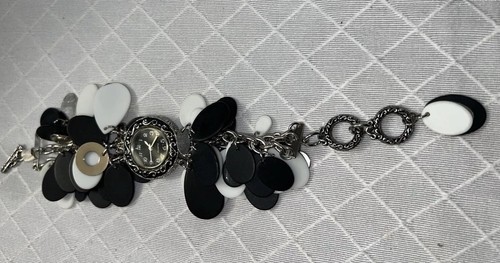 This is untested. This is a stylish Women's Quartz Watch with a black and white beaded bracelet featuring a silver tone toggle closure. The watch has a silver tone bezel surrounding a black dial, giving it a sleek and modern appearance. The bracelet is made of beads in a black and silver color combination, adding a touch of elegance to the design. This casual wristwatch is perfect for everyday wear and would make a great addition to any woman's accessory collection.