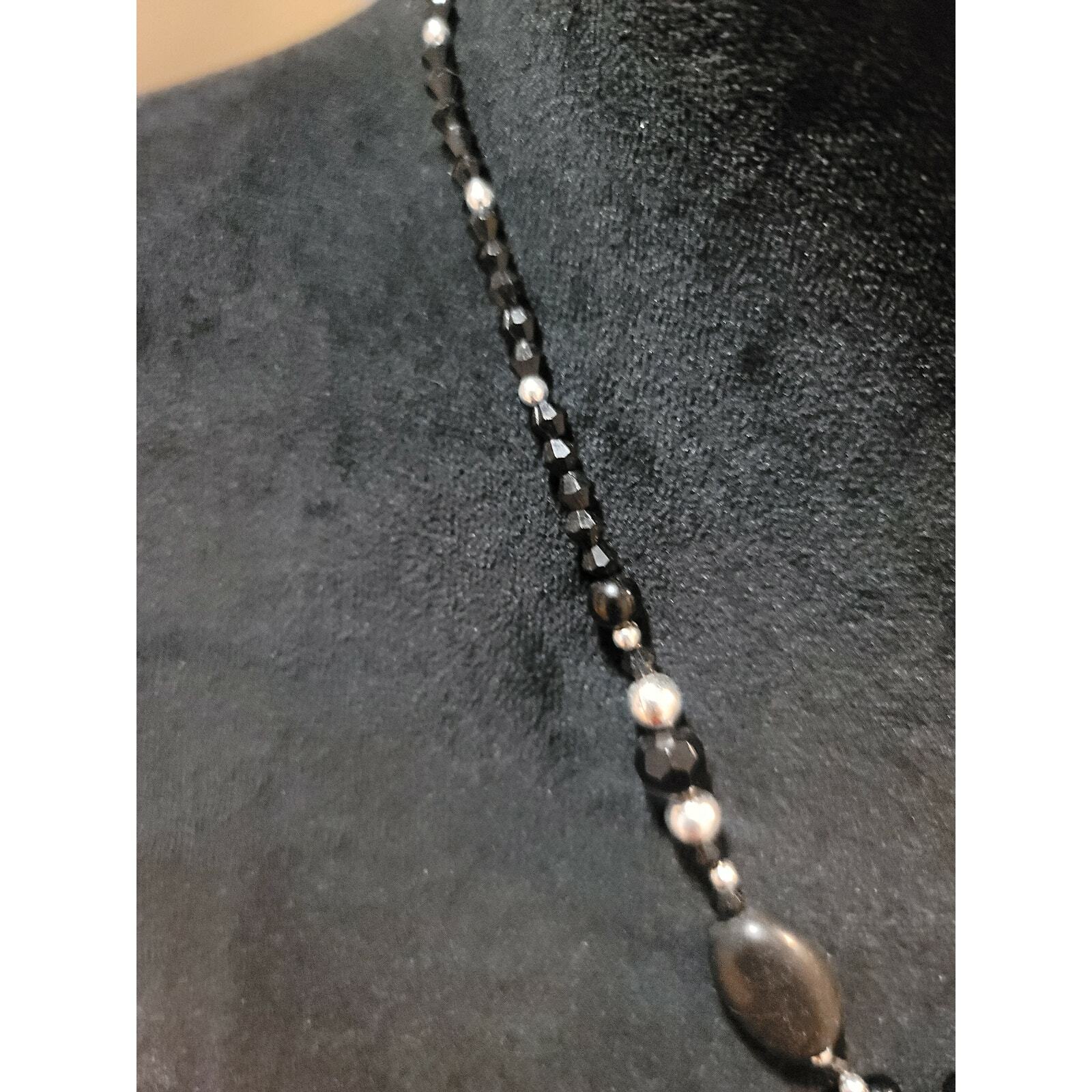 Women's Black Beaded Necklace With Teardrop Pendant And Lobster Clasp Lock