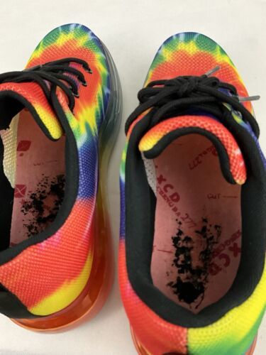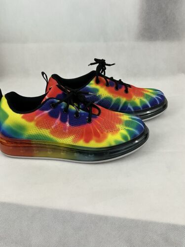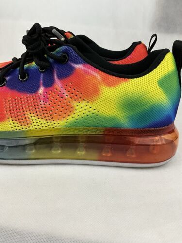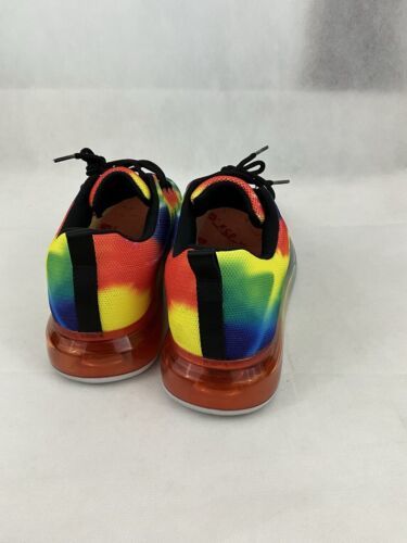 Elevate your style with these women's Cape Robbin Burst SS sneakers. The colorful rainbow design adds a pop of personality to any outfit. The shoe is made with a man-made fabric upper and features a comfortable fit in size 10M. Perfect for athletic activities or casual wear, these sneakers have a style code of MWE64721-1 and belong to the women's shoes category. The cape Robbin brand is known for its quality and this model, in particular, is a must-have for any sneaker enthusiast. Get ready to step out in style with these Cape Robbin Burst SS sneakers. Shoes are in good condition.