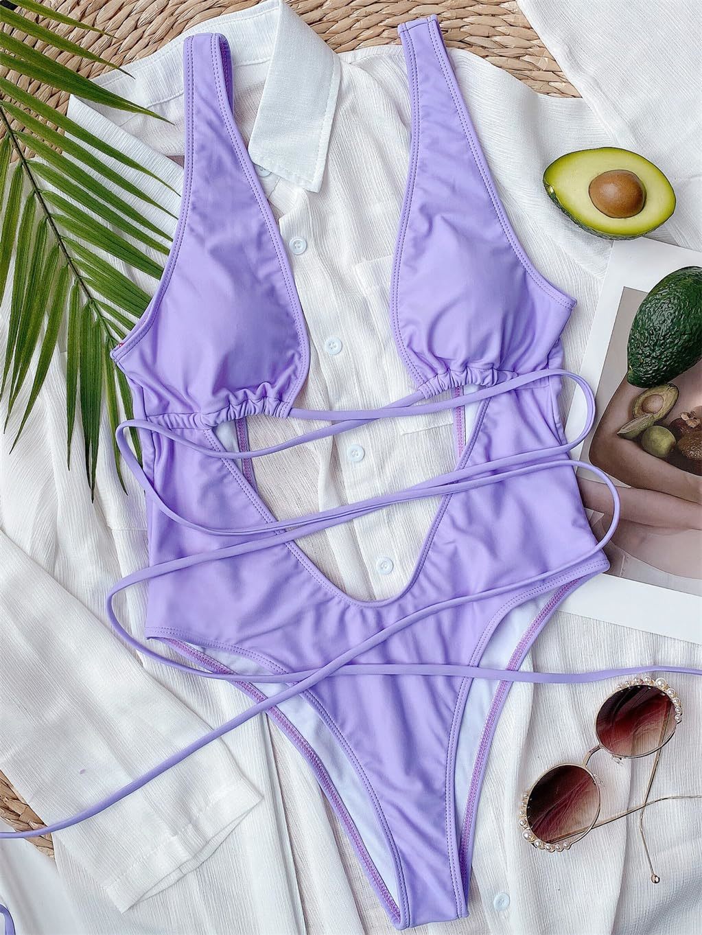 Product description: Make a bold statement at the beach or pool with this striking Pink Queens Choice one-piece swimsuit. The daring deep V-neckline and strategic cutouts create an alluring silhouette, while the strappy design adds modern sophistication. The suit features an elegant tie waist detail that allows for adjustable fit and styling options. Crafted with attention to detail, this swimwear piece combines contemporary design elements with classic appeal. The hollow-out pattern and cross-over straps create visual interest while maintaining security and comfort. Perfect for sunbathing, swimming, or making a splash at beach parties. The sleek design flatters the figure while offering moderate coverage where needed. This versatile swimsuit transitions seamlessly from poolside lounging to beachfront activities, making it an essential addition to your summer wardrobe.