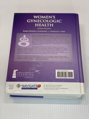 Women's Gynecologic Health by Kerri Durnell Schuiling and Frances E. Likis 2017. About this product Synopsis Women's Gynecologic Health, Third Edition is a comprehensive text that equips students and practicing clinicians with a strong foundation in women's gynecologic health, including health promotion, maintenance, and treatment. Based on the most recent research and evidence, it provides authoritative content written from a feminist perspective to convey a holistic approach to care. Completely updated and revised, it includes clinical considerations specific to the different physical and psychosocial life stages of women, an emphasis on physiologic mechanisms in order to enhance understanding of normal and abnormal processes, and evidence-based content.The Third Edition includes a new chapter on prenatal and postpartum care, a new section on highly effective long-acting reversible contraception (LARC) for adults and adolescents, expanded content on caring for lesbian, bisexual, queer, transgender, and gender non-forming people, and current standards and recommendations for care.Each new print copy includes Navigate 2 Advantage Access that unlocks a comprehensive and interactive eBook, student practice activities and assessments, a full suite of instructor resources, and learning analytics reporting tools. Women's Gynecologic Health, Third Edition is a trusted, comprehensive, and evidence-based text that presents women's gynecologic health from a woman-centered and holistic viewpoint. Encompassing both health promotion and management of gynecologic conditions, it provides clinicians and students with a strong foundation in gynecologic care and the knowledge necessary to apply it in clinical practice. With an emphasis on the importance of respecting the normalcy of female physiology, it is an essential reference for all women's healthcare providers.The Third Edition includes new content on obstetrics with four new chapters on prenatal and postpartum care, including anatomy and physiologic adaptations of normal pregnancy, diagnosis of pregnancy and overview of prenatal care, common complications of pregnancy, and postpartum care. Thoughtfully updated and revised, it features expanded content on often underrepresented populations and topics, such as caring for lesbian, bisexual, queer, transgender, and gender non-conforming individuals, intimate partner violence, and sexual assault. WomenaS Gynecologic Health, Third Edition Is A Trusted, Comprehensive, And Evidence-Based Text That Presents WomenaS Gynecologic Health From A Woman-Centered And Holistic Viewpoint. Encompassing Both Health Promotion And Management Of Gynecologic Conditions, It Provides Clinicians And Students With A Strong Foundation In Gynecologic Care And The Knowledge Necessary To Apply It In Clinical Practice. With An Emphasis On The Importance Of Respecting The Normalcy Of Female Physiology, It Is An Essential Reference For All WomenaS Healthcare Providers. The Third Edition Includes New Content On Obstetrics With Four New Chapters On Prenatal And Postpartum Care, Including Anatomy And Physiologic Adaptations Of Normal Pregnancy, Diagnosis Of Pregnancy And Overview Of Prenatal Care, Common Complications Of Pregnancy, And Postpartum Care. Thoughtfully Updated And Revised, It Features Expanded Content On Often Underrepresented Populations And Topics, Such As Caring For Lesbian, Bisexual, Queer, Transgender, And Gender Non-Conforming Individuals, Intimate Partner Violence, And Sexual Assault. Product Identifiers ISBN-10 1284076024 ISBN-13 9781284076028 Product ID (ePID) 219637921 Key Details Author Frances E. Likis, Kerri Durnell Schuiling Number Of Pages 890 pages Format Hardcover Publication Date 2016-08-09 Language English Publisher Jones Bartlett Learning, LLC Publication Year 2016 Additional Details Edition Number 3 Copyright Date 2017 Illustrated Yes Dimensions Weight 52.1 Oz Height 2 In. Width 7.2 In. Length 9.2 In.