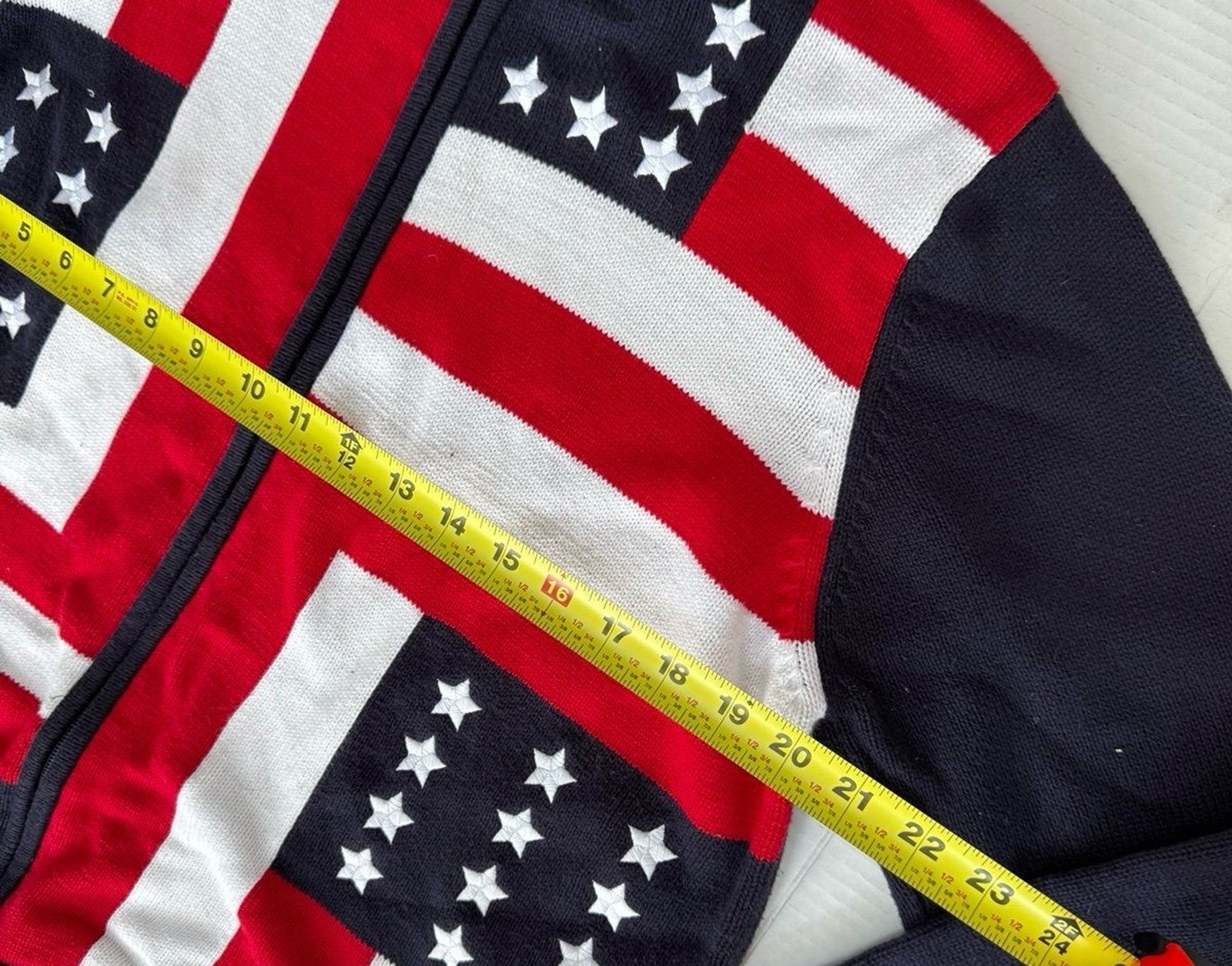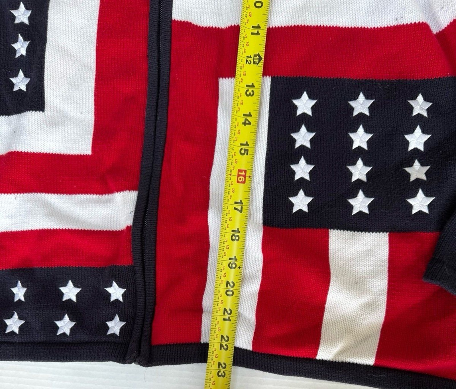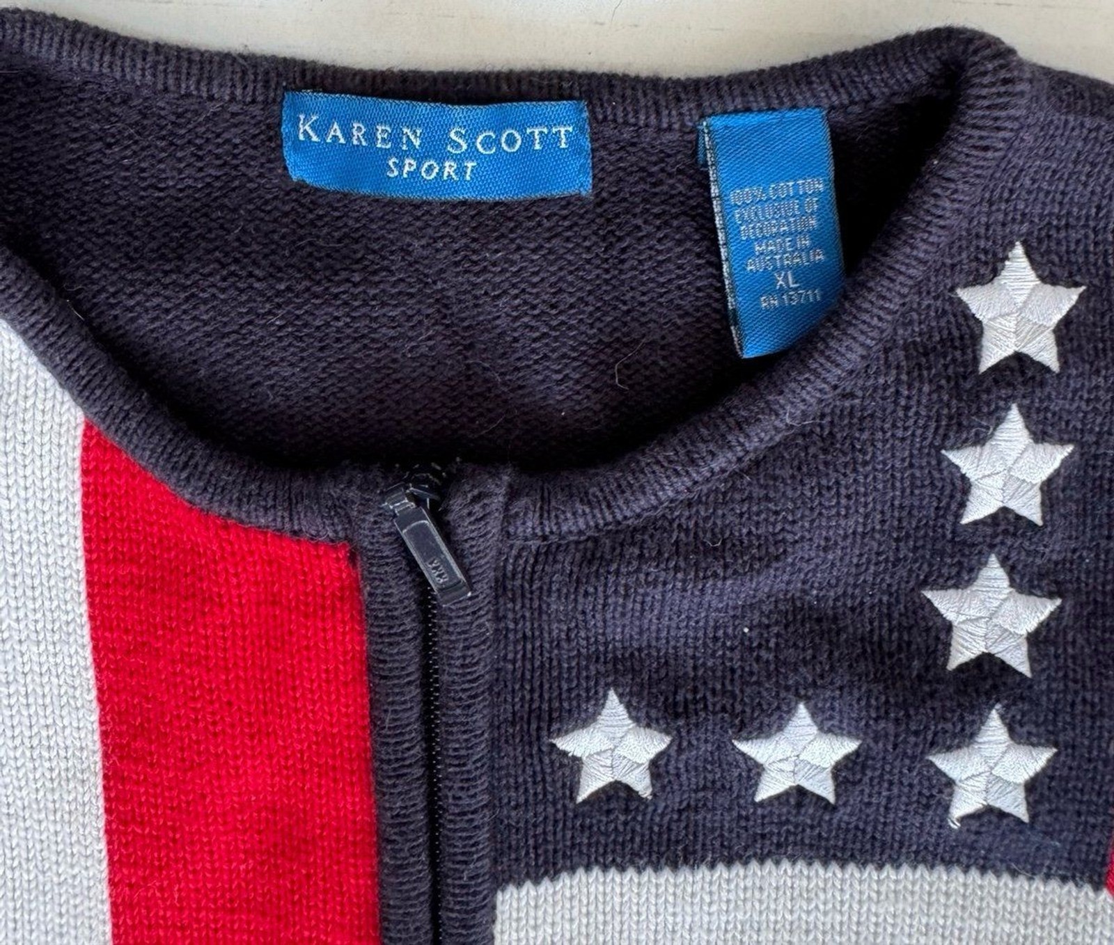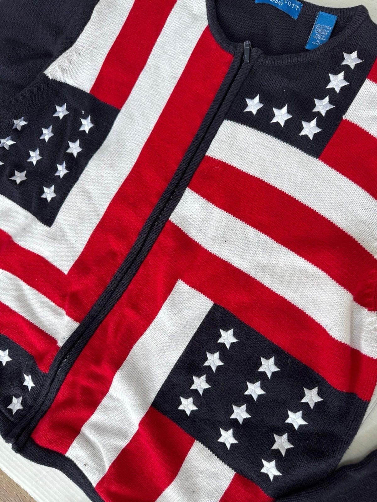 - Women's Karen Scott American Flag Themed Zip Front Sweater Size XL Americana
