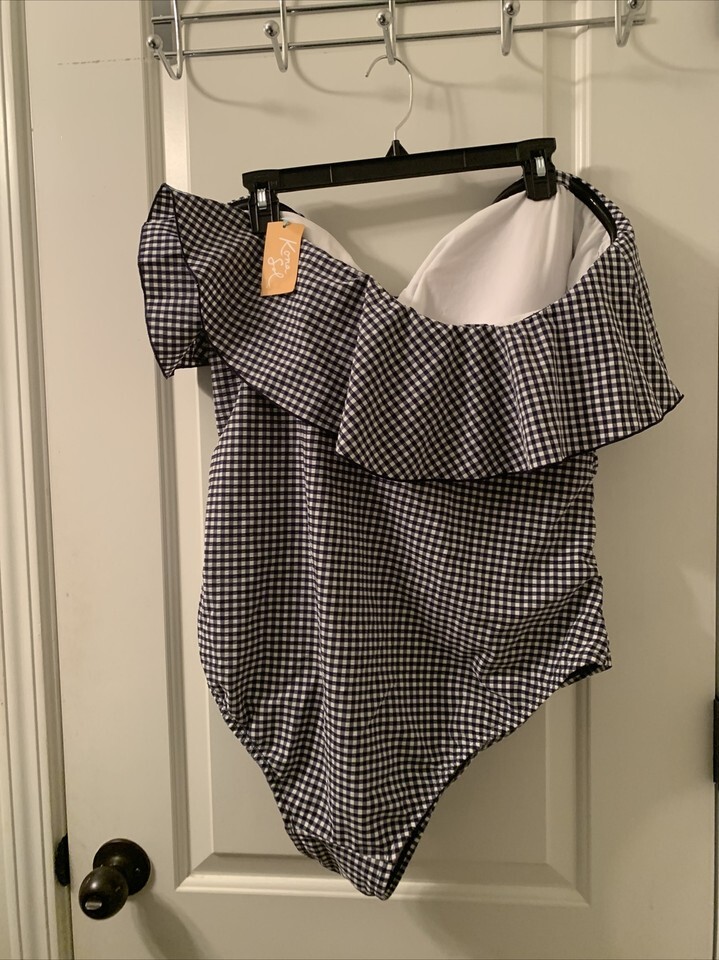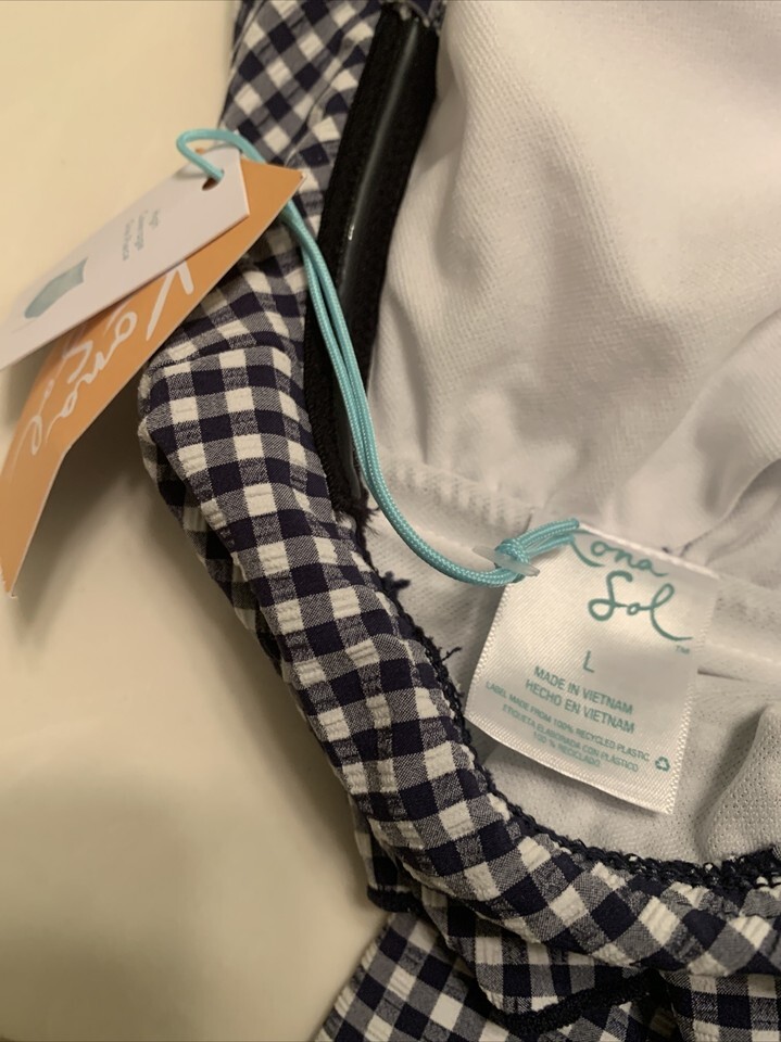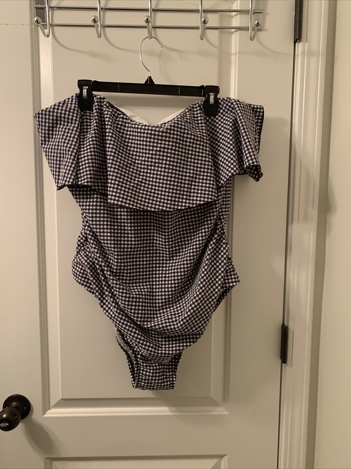 One-Piece Kona Sol Swimsuit Women's Blue White Checkered Strapless New with tag.