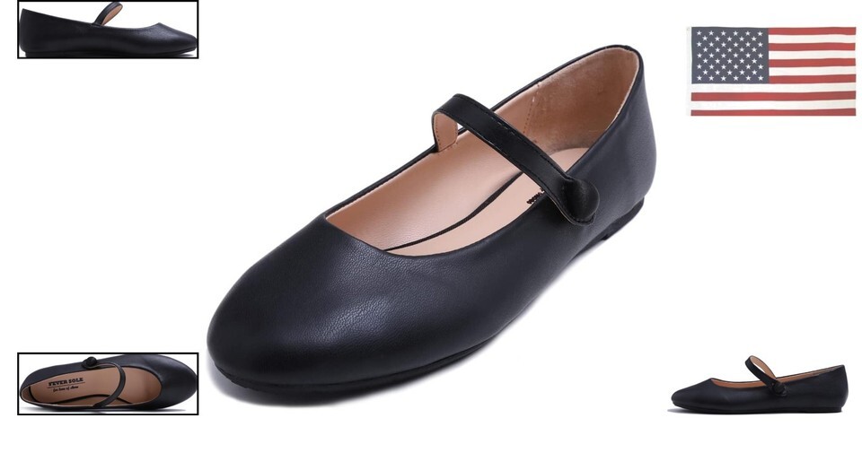 - Women's Mary Jane Flats Adjustable Buckle Strap & Round Toe, Black Napa, Size...