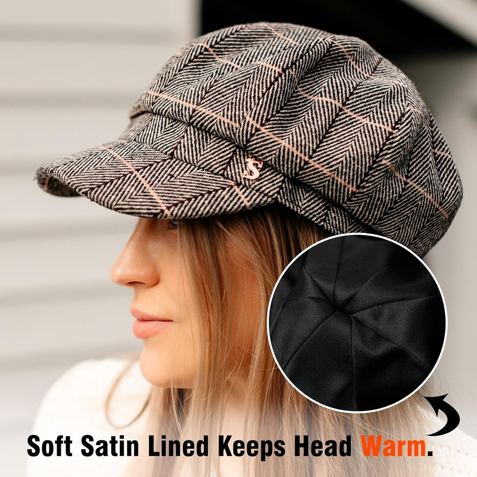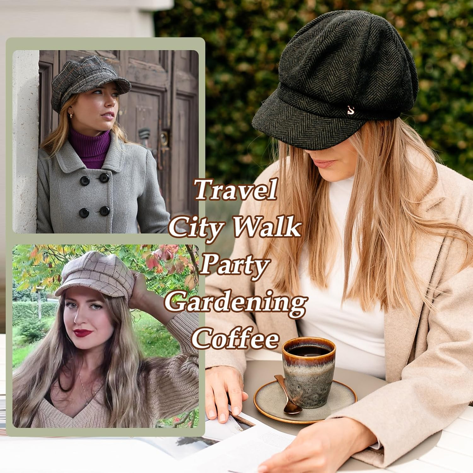 - Women's Merino Wool Newsboy Hat with Visor and Beret Style
