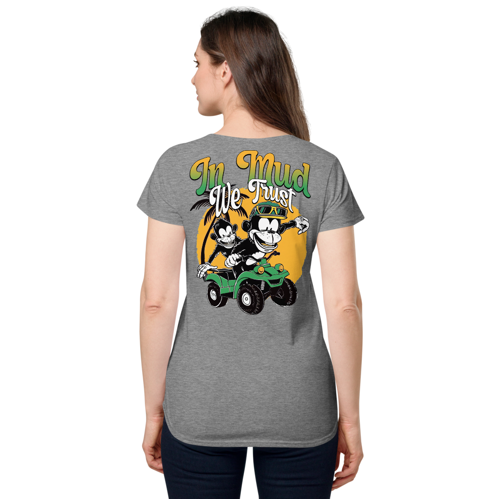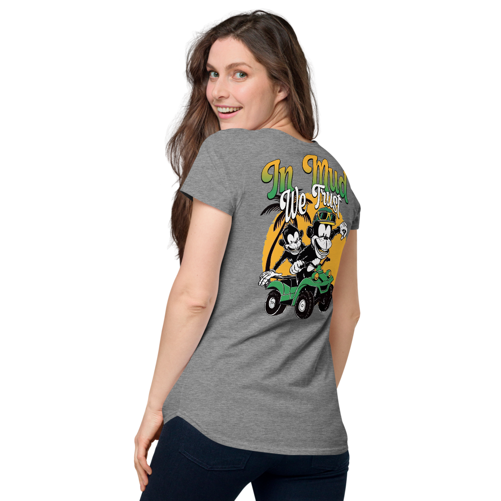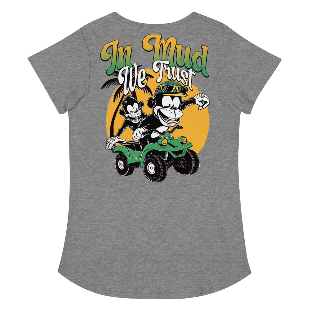 Women’s Round Neck Tee – “In Mud” Back Print Grey Marle