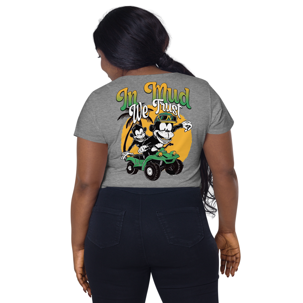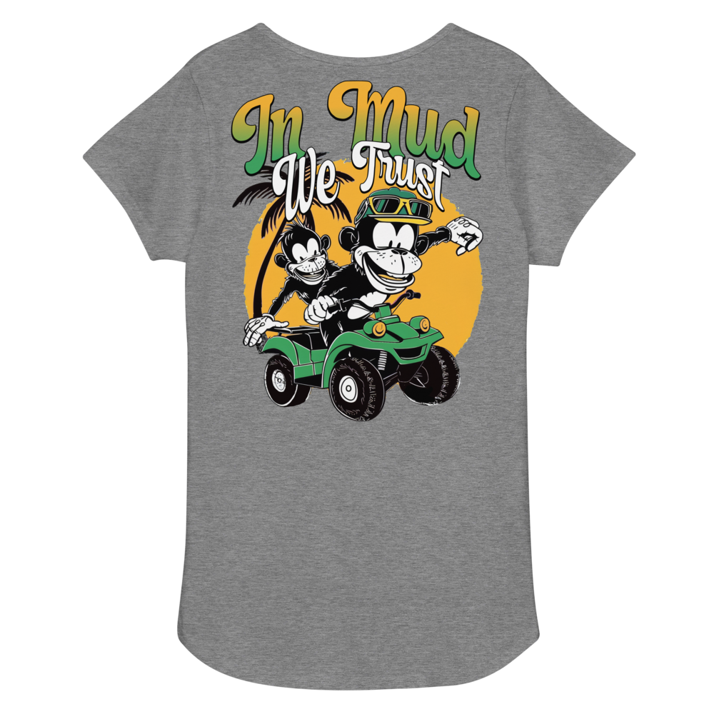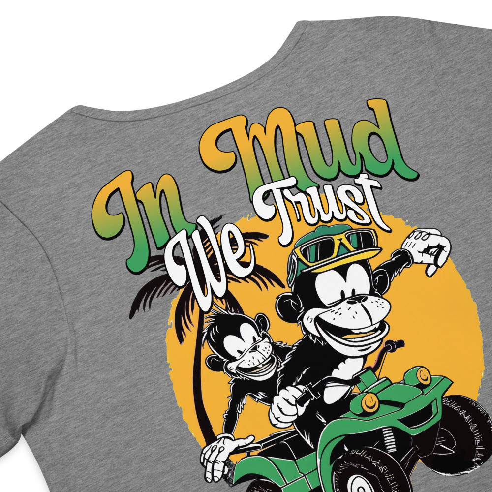 - Women’s Round Neck Tee – “In Mud” Back Print Grey Marle