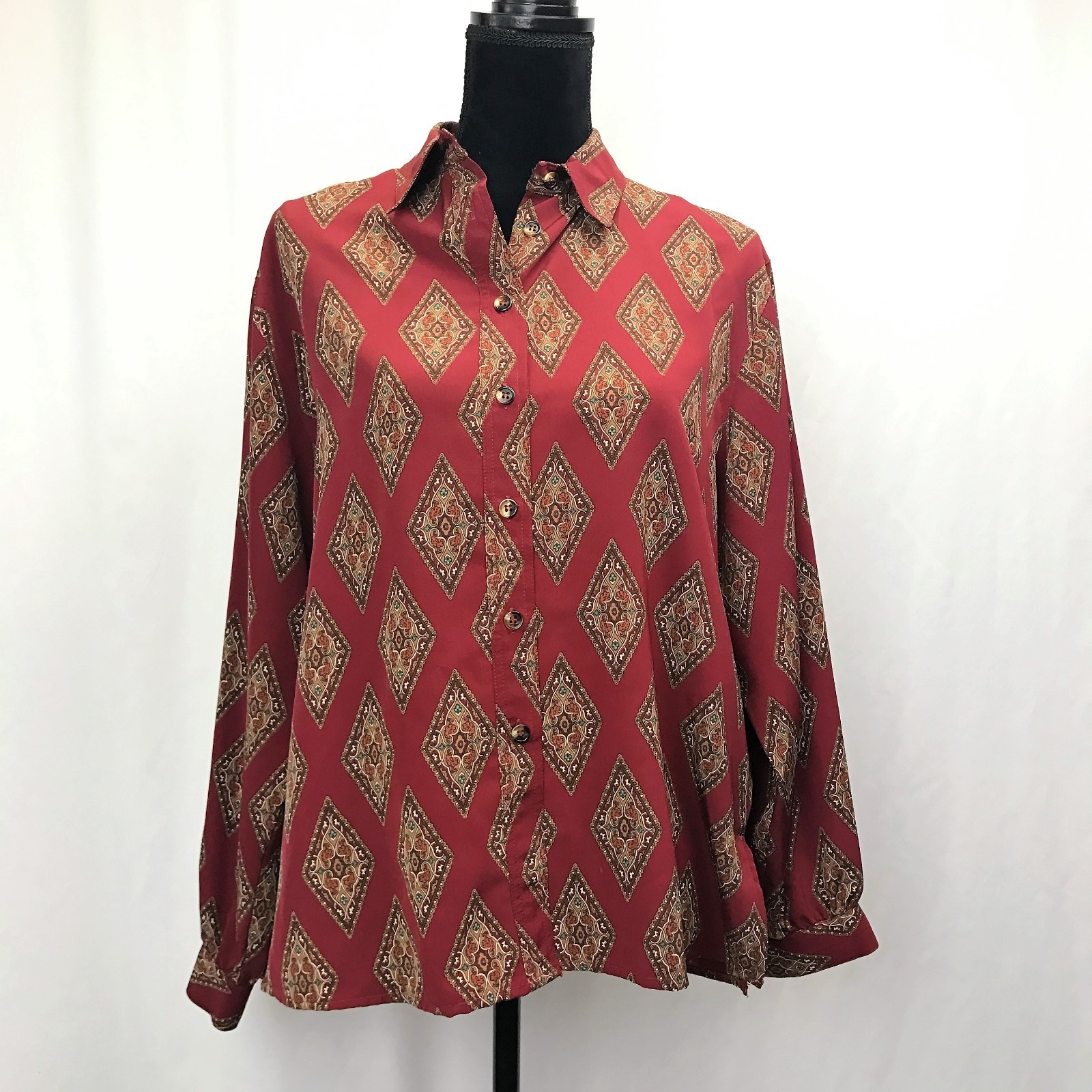 - Women's Russ Red Button Up Formal Dress Shirt Size 12