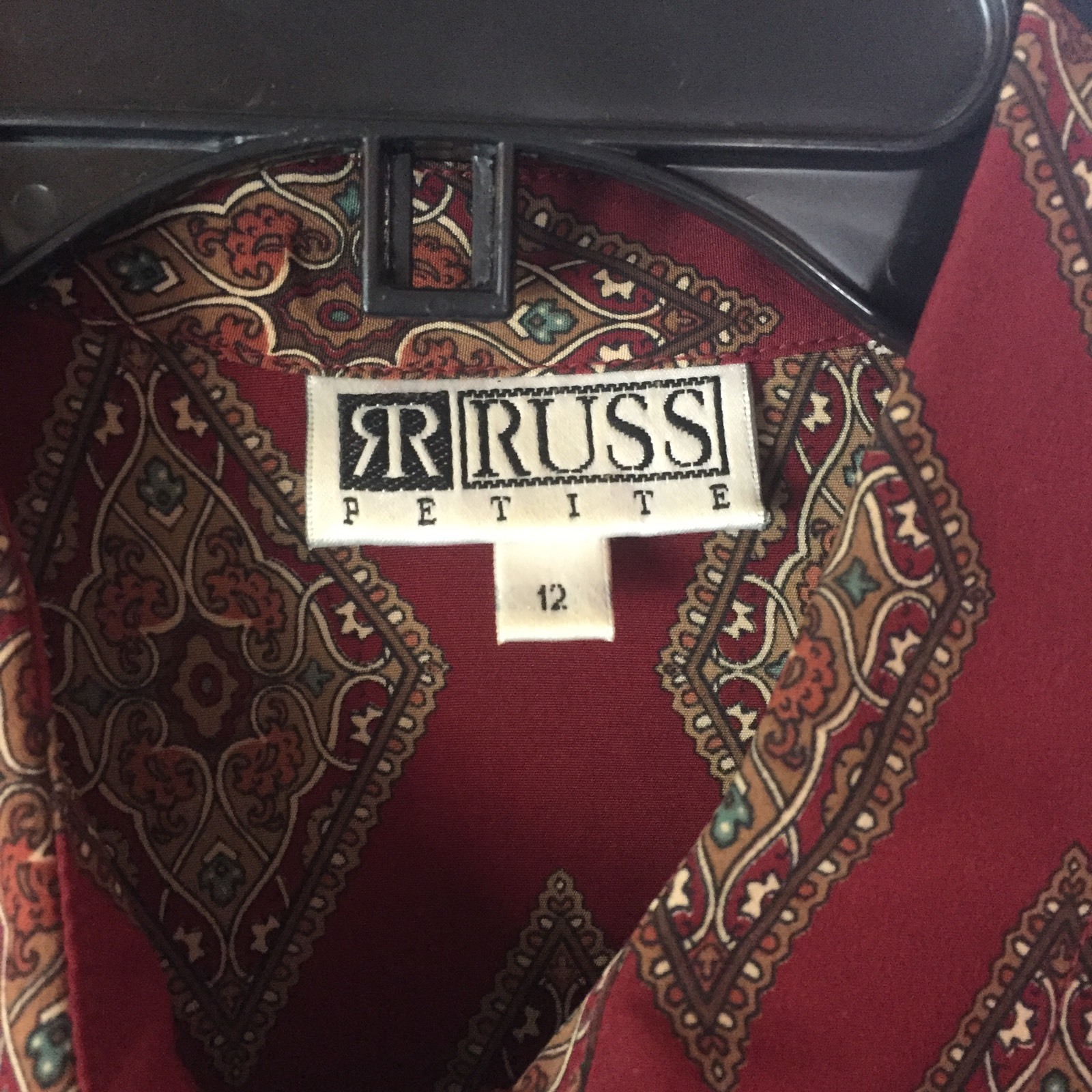 You Are Buying A Russ Women's dress shirt- Sz 12 Armpit to armpit- 22'' Neck to bottom- 23'' It is in Great Used Condition with No Damage, Stains or Rips The measurements are on the pictures but If you need more measurements please just ask and I will measure for you and I will try and contact you as soon as possible