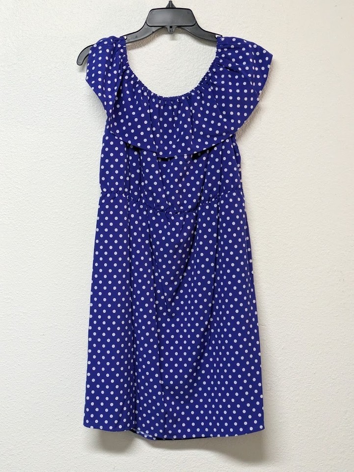 Primary image for Women's Summer Off The Shoulder, Polka Dot Flowy Short Ruffle Blue Dress Large