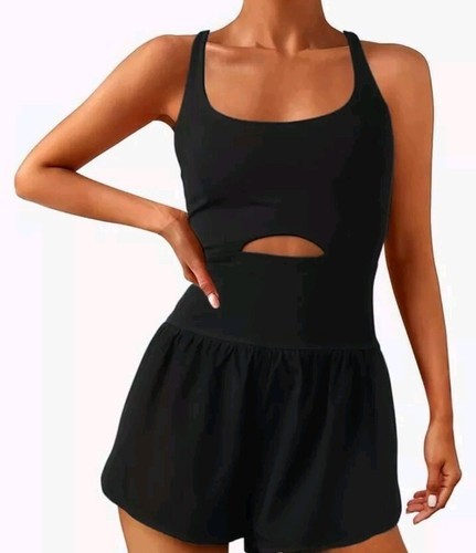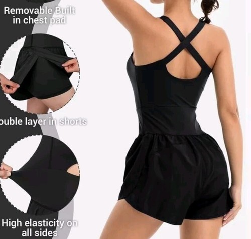 This is a super cute Wenlia Women Workout Romper Onesie with Padded Bras .Sleeveless One Piece Outfit. Atheletic style with shorts on the bottom. Perfect for Running. Jumpsuit style. New with tags