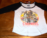 This is a WOMEN'S TEEN JUNIORS 70'S STYLE STAR WARS THE FORCE AWAKENS REY FINN BB8 CHEWBACCA T-shirt. It is a Size SMALL and is NEW with the tag. It is 17 inches from armpit to armpit and 23 inches in length. Awesome Shirt. It has the 70's style 3/4 length sleeves. The print is made to look vintage. Original New Old Stock From 2015! Combine auctions to save on shipping. D2AF ~~~~~~~~~~~SMOKE FREE HOME!!~~~~~~~~~~~