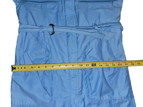 Look stylish on the slopes with this vintage Mistral snowsuit in a beautiful blue color. Made with softshell fabric and lined with acrylic, it features a full zip closure and a belted waist for a classic fit. The long sleeves and buckle accents add a touch of elegance, while the collared neckline provides warmth and protection.