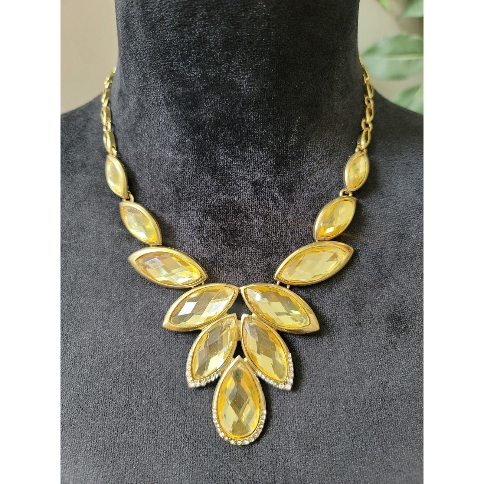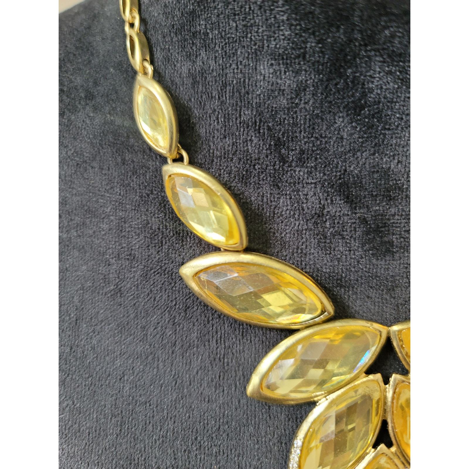 - Women's Yellow Rhinestone Teardrop Necklace with Gold Accents Elegant Jewelry