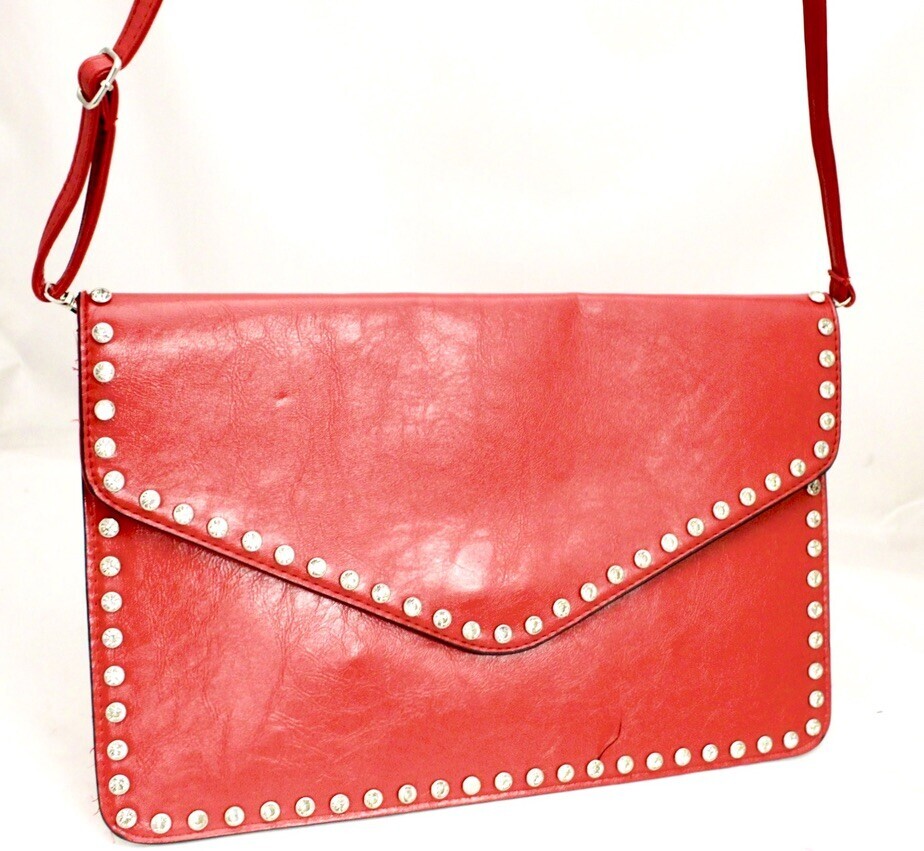 - Womens Handbag Red Huge Shoulder Messenger Envelope Bag Purse Crystal Studs