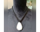 Womens Mother of Pearl Teardrop Black Glass Seed Bead Chain Pendant Necklace.