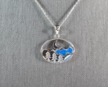 - Womens Sterling Silver Blue Opal Mountain Moon Tree Pendant Necklace 5.4g E3648