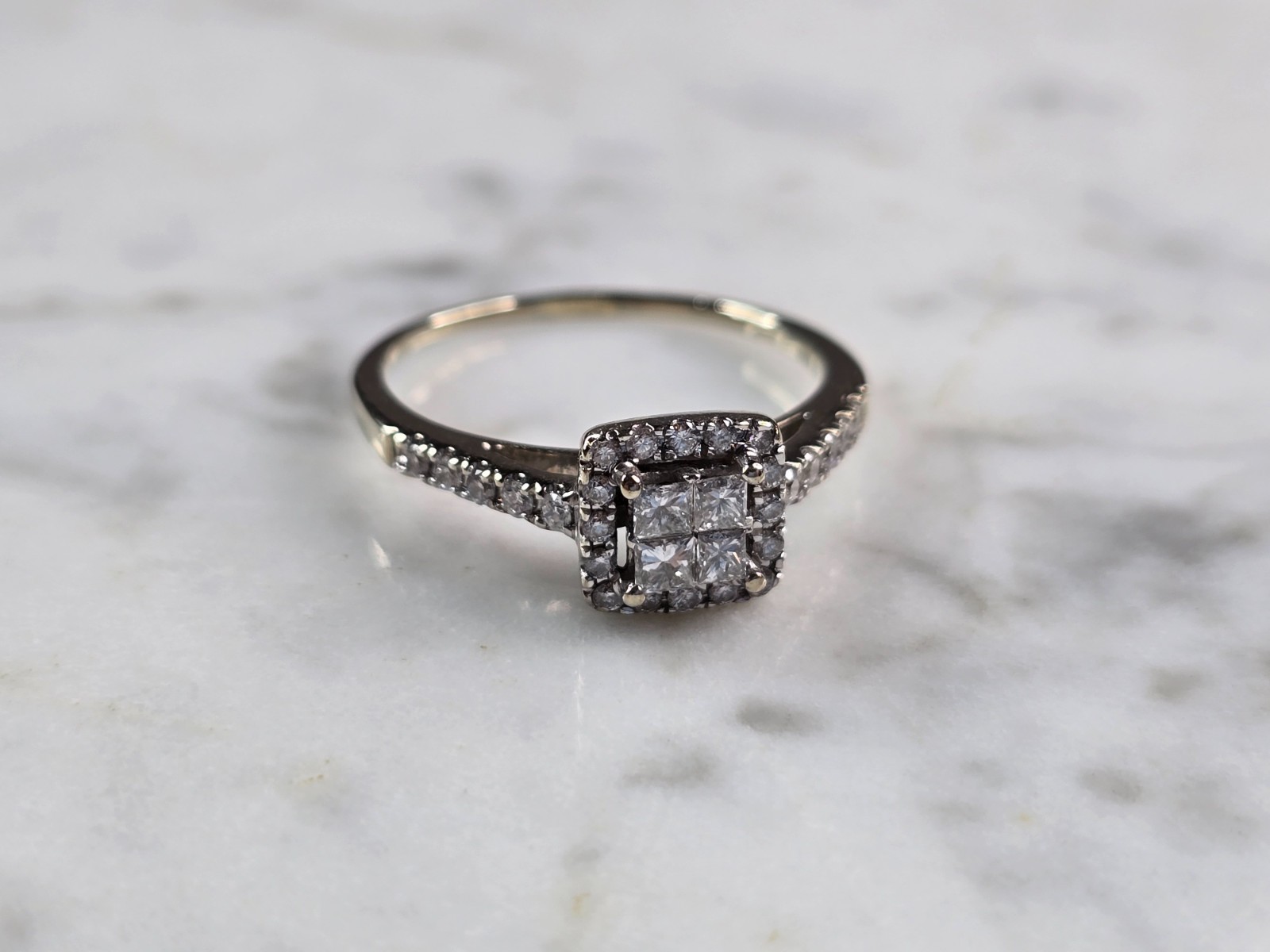 A WOMENS VINTAGE ESTATE 14K YELLOW GOLD DIAMOND RING. THE TOTAL WEIGHT IS 5.0g, AND IS A SIZE 8.0. THE WIDTH OF THE RING IS 3/8". THE CENTER HAS ABOUT 0.24cts, WITH 26 ACCENT DIAMONDS. RING IS NOT MARKED, BUT IT HAS BEEN TESTED, AND IS GUARANTEED TO BE AS DESCRIBED. ANY QUESTIONS PLEASE DONT HESITATE TO ASK. BE SURE TO CHECK OUT SOME OF OUR OTHER GREAT ITEMS UP FOR SALE. THANK YOU.