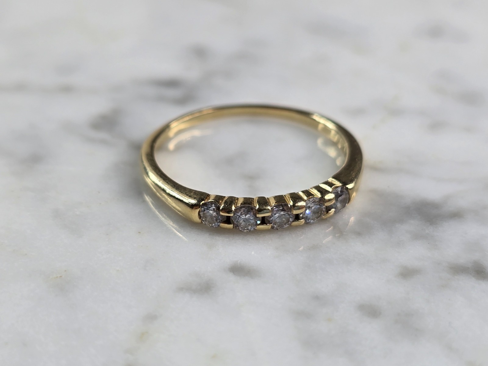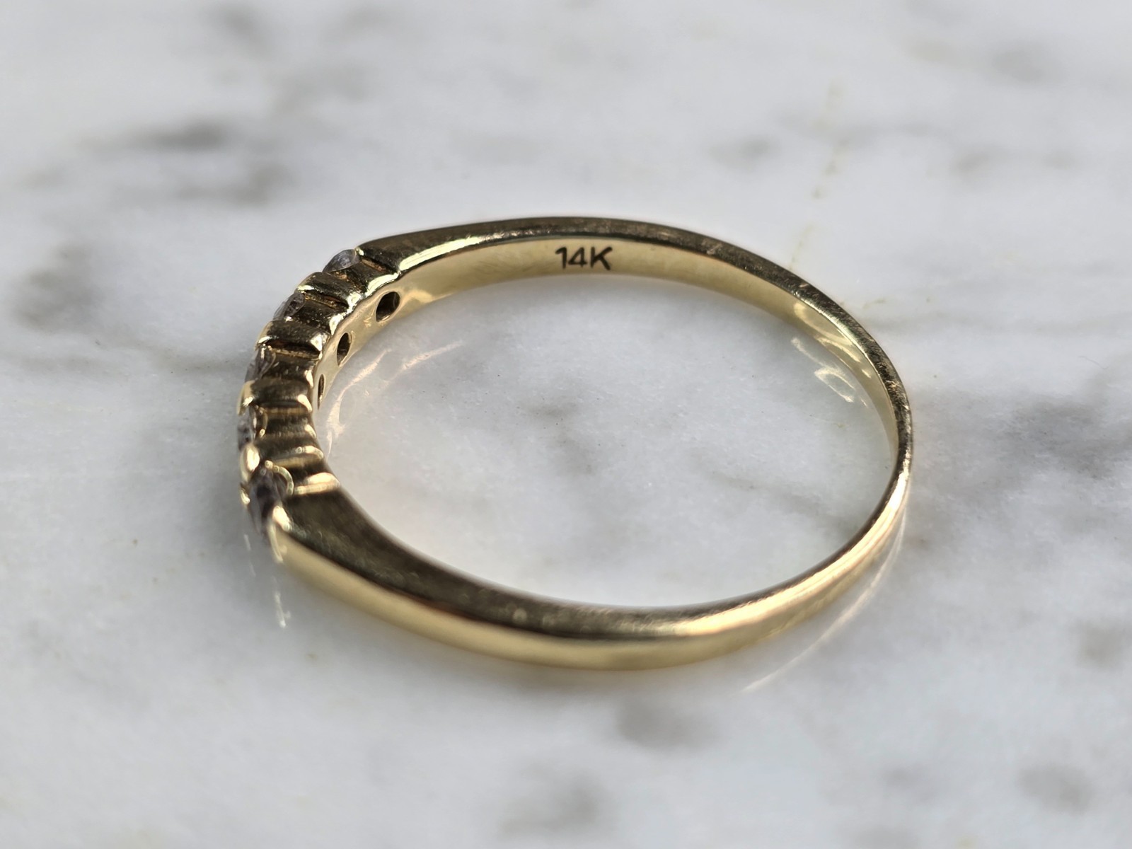 A WOMENS VINTAGE ESTATE 14K YELLOW GOLD DIAMOND RING. THE RING WEIGHS 2.5g AND IS A SIZE 10.0 THERE ARE ABOUT 0.15cts OF DIAMONDS IN THIS RING. THE WIDTH OF THE RING IS 1/8". ANY QUESTIONS PLEASE DO NOT HESITATE TO ASK. BE SURE TO CHECK OUT MY OTHER GREAT ITEMS UP FOR SALE. THANK YOU