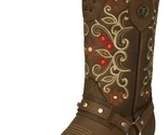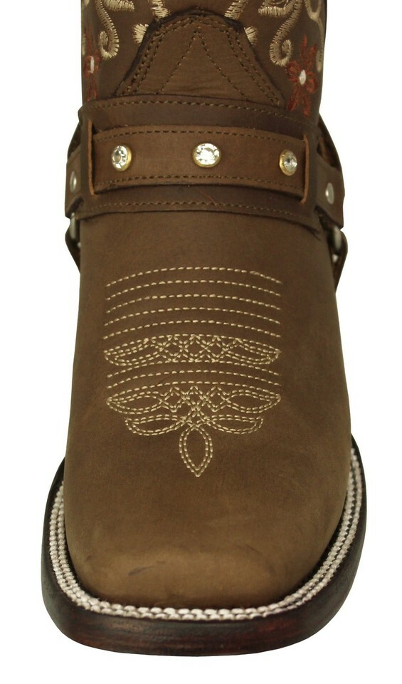 Womens Western Boot Light Brown Floral Embroidery Leather Rodeo Wear Boot Straps
