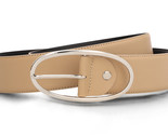 Womens vegan belt apple skin beige casual elegant oval buckle clasp square tip
