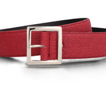 Womens vegan belt of organic Piñatex red fabric fashion elegant square buckle