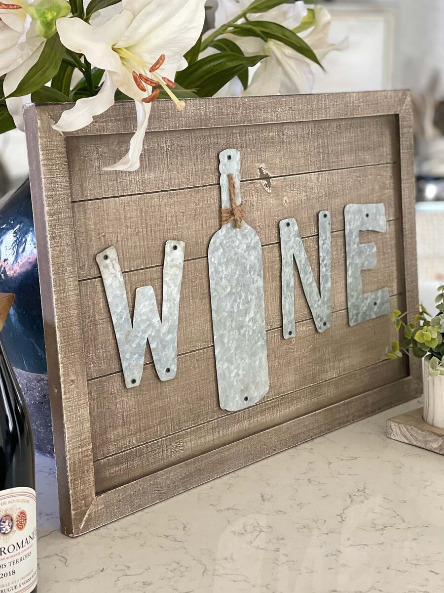 - Wood Wine Sign Decor with Galvanized Wine Lettering