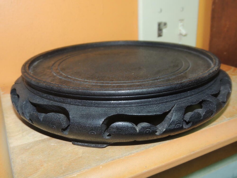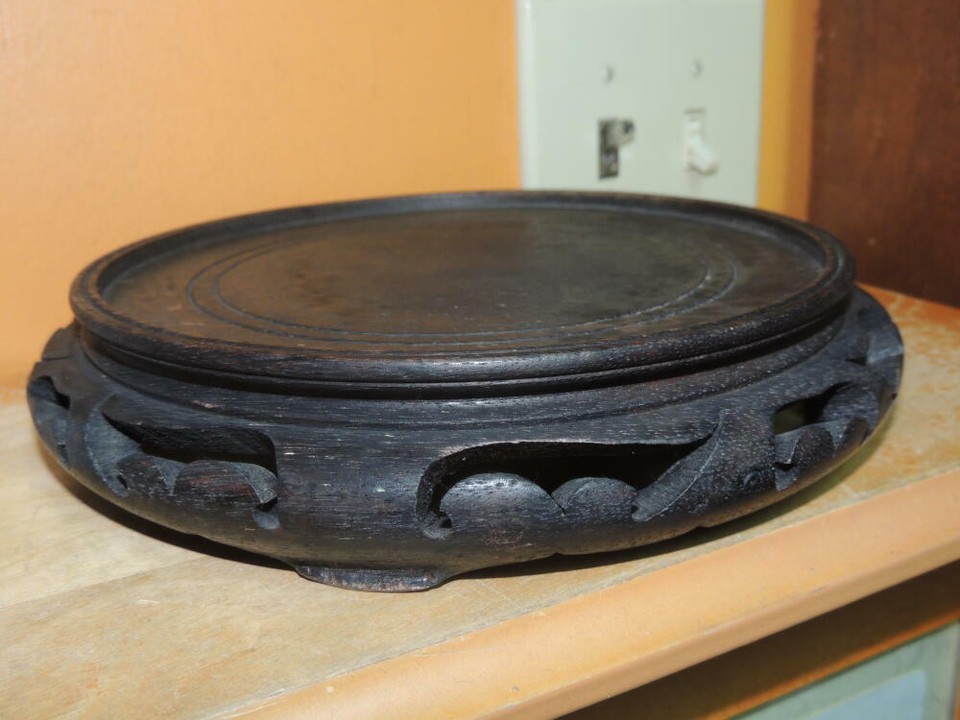 - Wood Wooden 7.2"+x8.75" Stand Vase Pot Bowl Lamp Display poss Teak Vintage