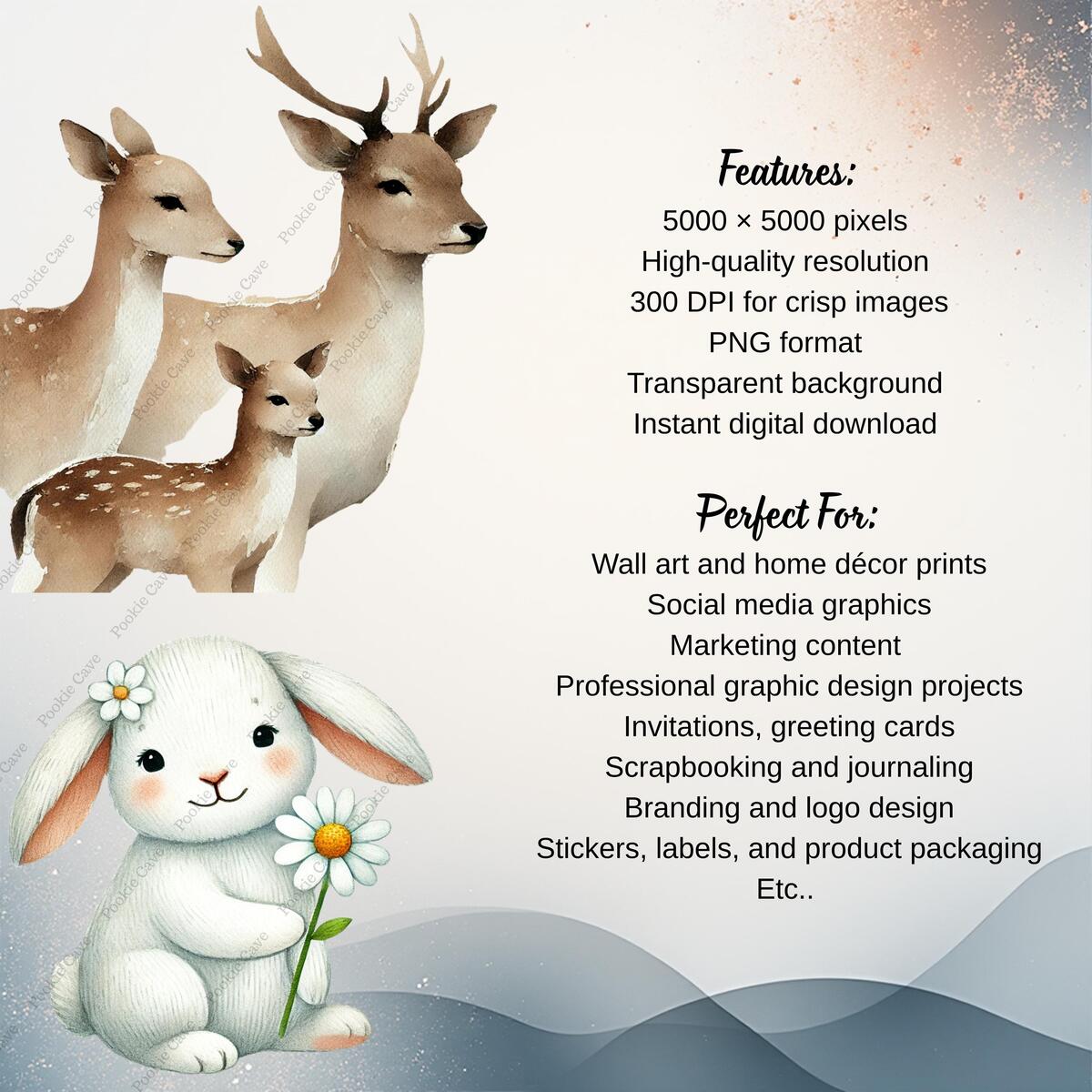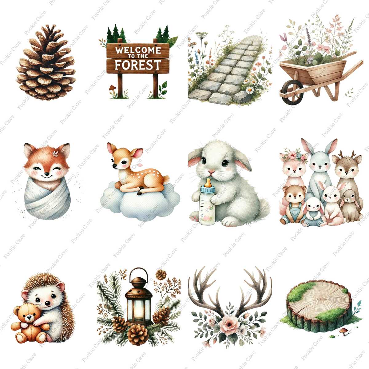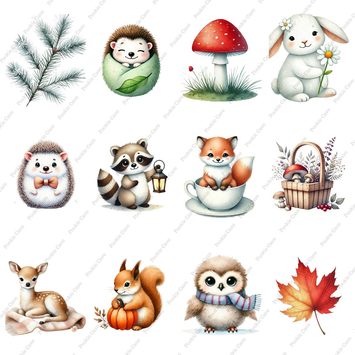 Bring the calm beauty of the forest into your creative projects with this Woodland Watercolor Clipart Collection — a premium set of 50 digital illustrations featuring adorable animals, nature and woodland charm. Perfect for stickers, sublimation, invitations, nursery prints, scrapbooking, and digital design.