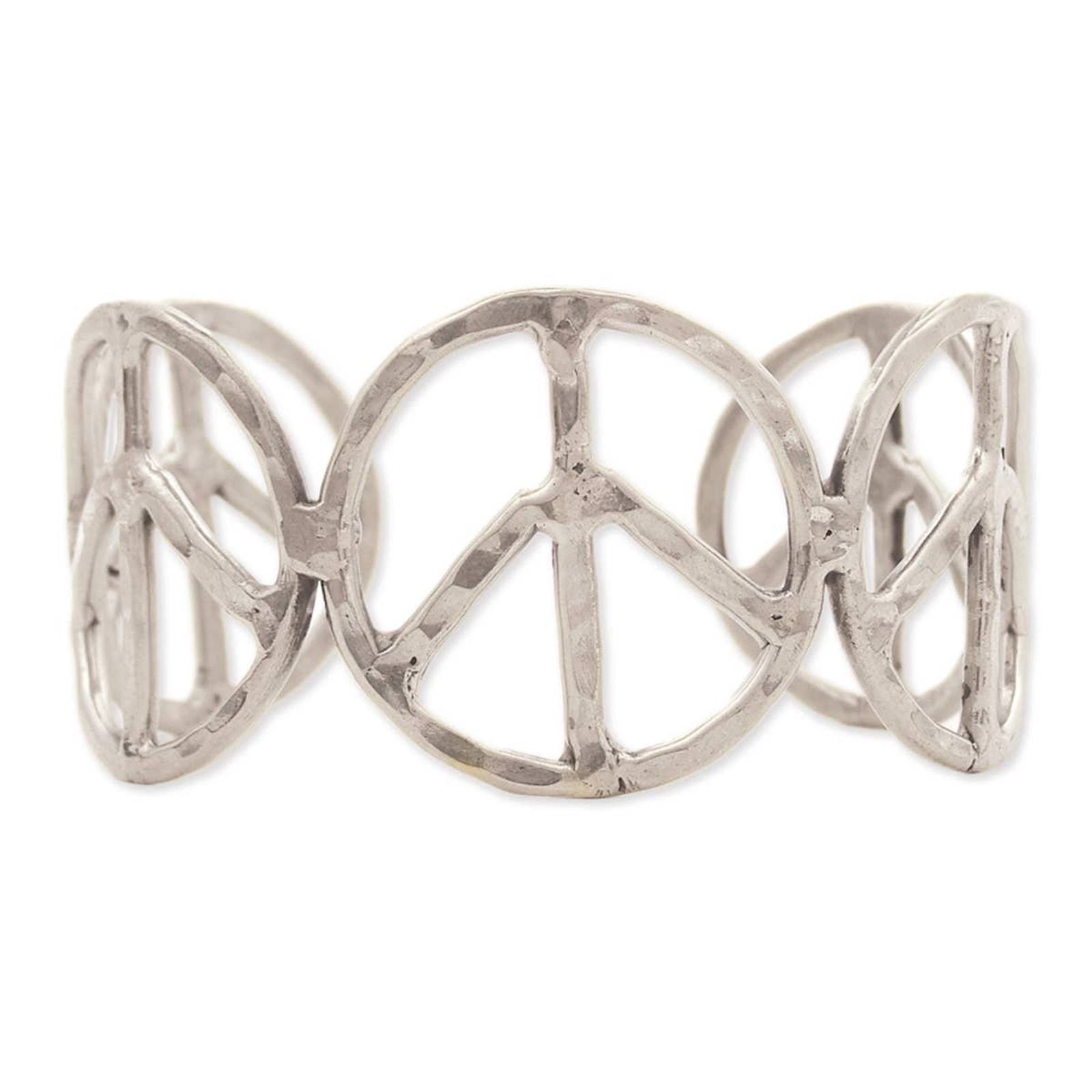 - Woodstock Vibes Silver Peace Sign Cuff Bracelet