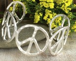 Brimming with vintage hippie style, this silver peace sign cuff bracelet has tons of charm. The hammered texture peace signs gives it a distressed vintage vibe that adds to any natural boho look. Peace out with this gorgeous silver hammered peace sign cuff bracelet!