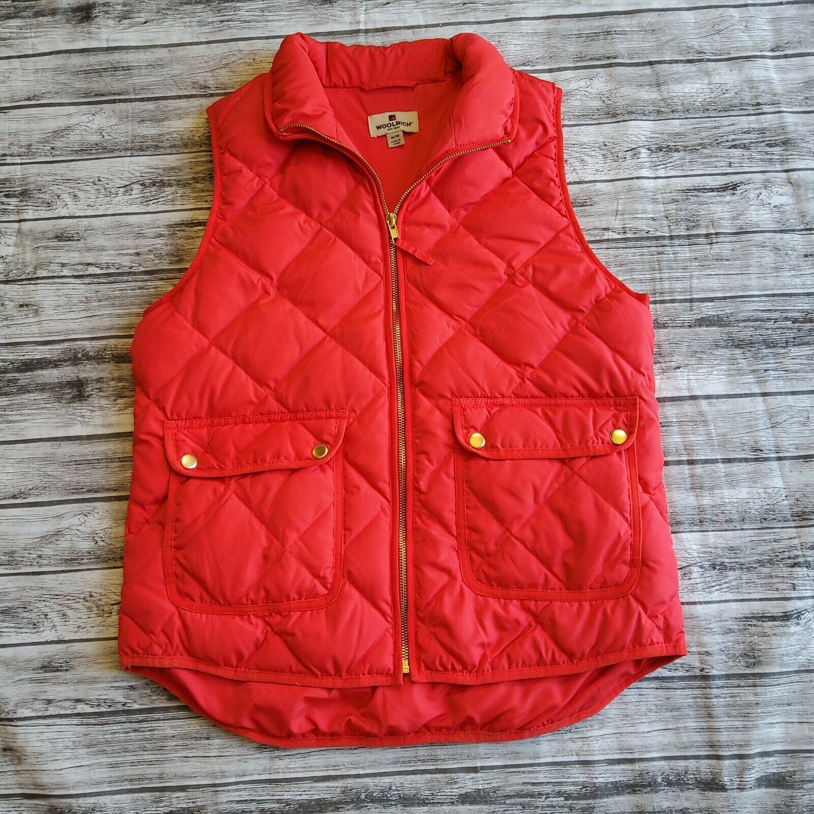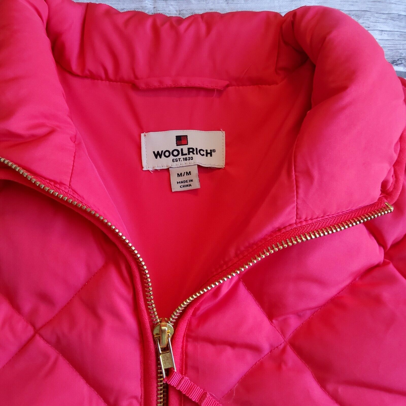 - Woolrich Puffer Down Vest Size M, Red-Orange Sleeveless Full Zip Classy Outdoor